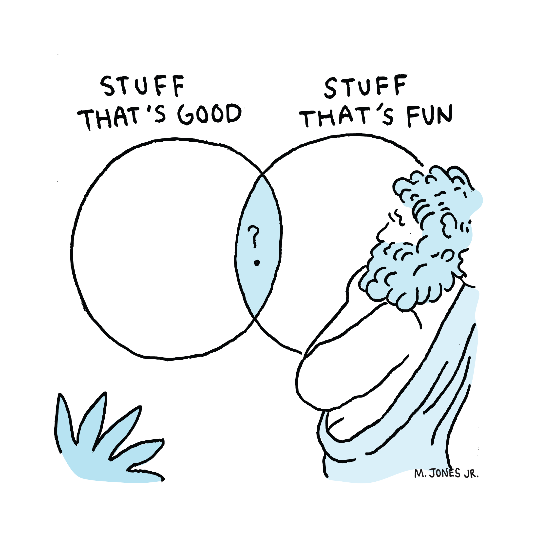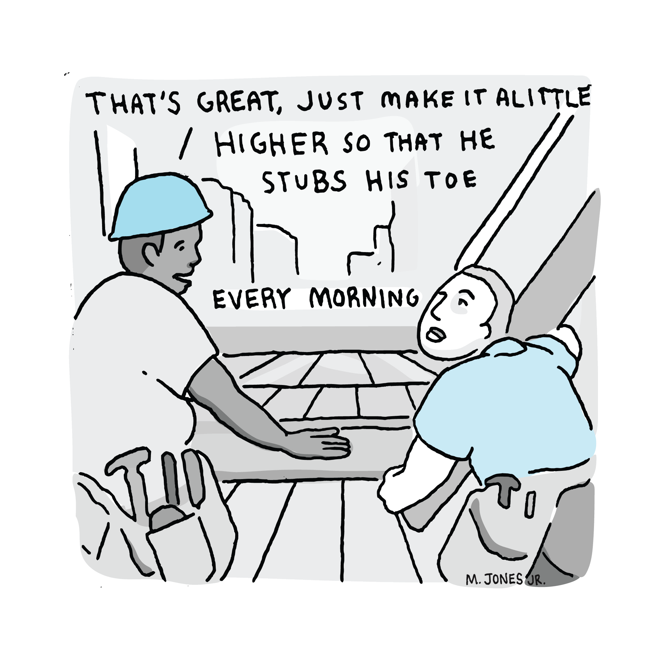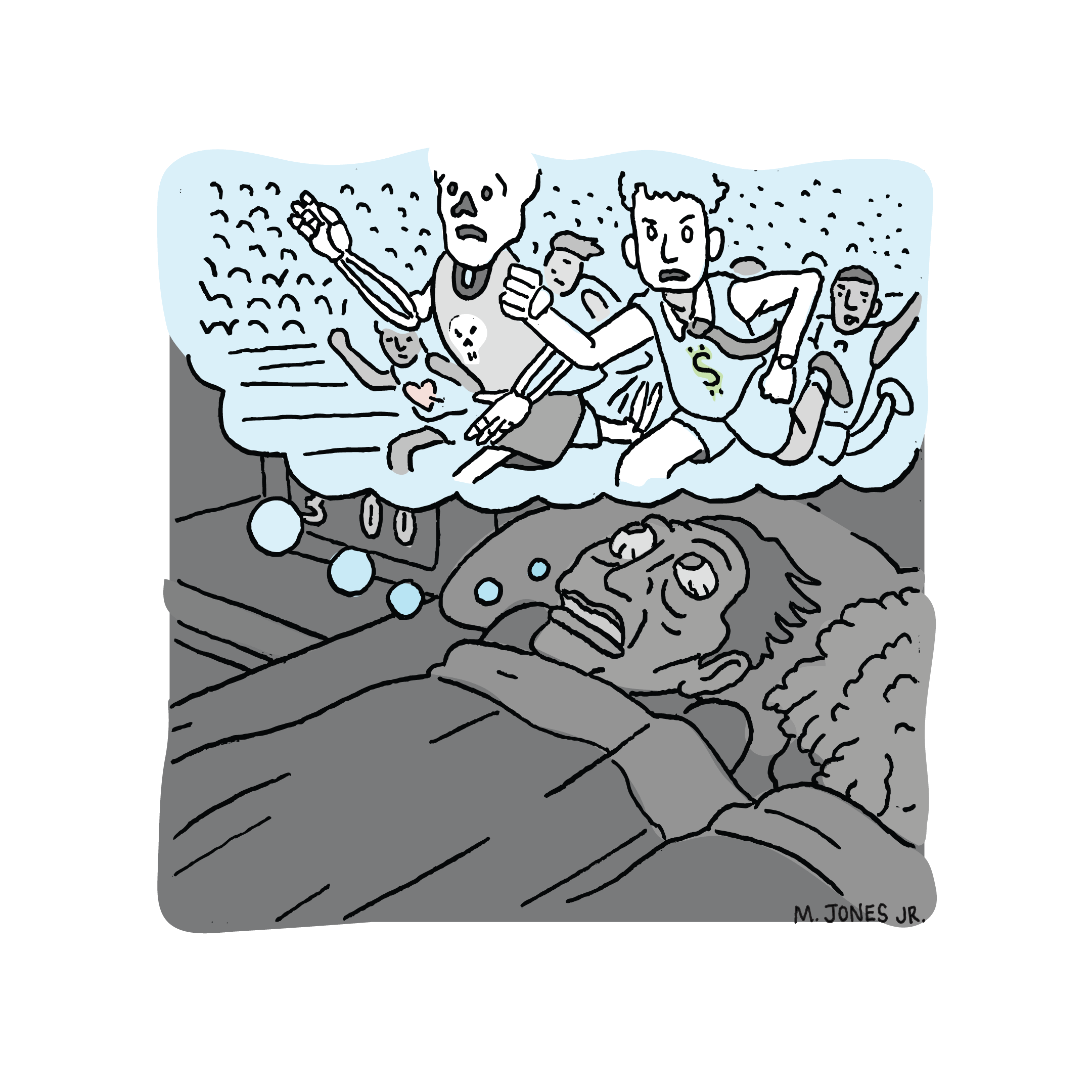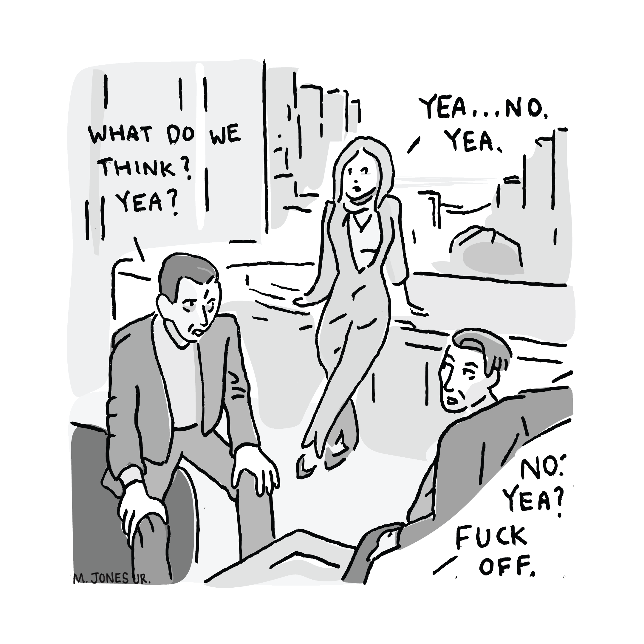 This piece is featured in New Frontiers alongside an article by Desmond Greene discussing the ‘possibility paradox’ put forward by renowned social psychologist Dr. Wilhelm Sarkozy. Sarkozy outlines the paradox on a whiteboard in his office nestled in the suburbs outside of Philadelphia. He draws a horizontal line and labels it ‘inertness’ and a vertical axis he labels ‘perceived possibility’. Sarkozy turns around and smiles as he draws a ray at a 45 degree angle issuing from the axes intersection. “That goes on forever” he quips. Sarkozy’s hypothesis is that as perceived possibility increases, inertness or “doing nothing” increases as well. His research centers mainly around unearthing the motivational structures that create this paradox. When probed for his take on the preliminary data he jests, “anything is possible.”